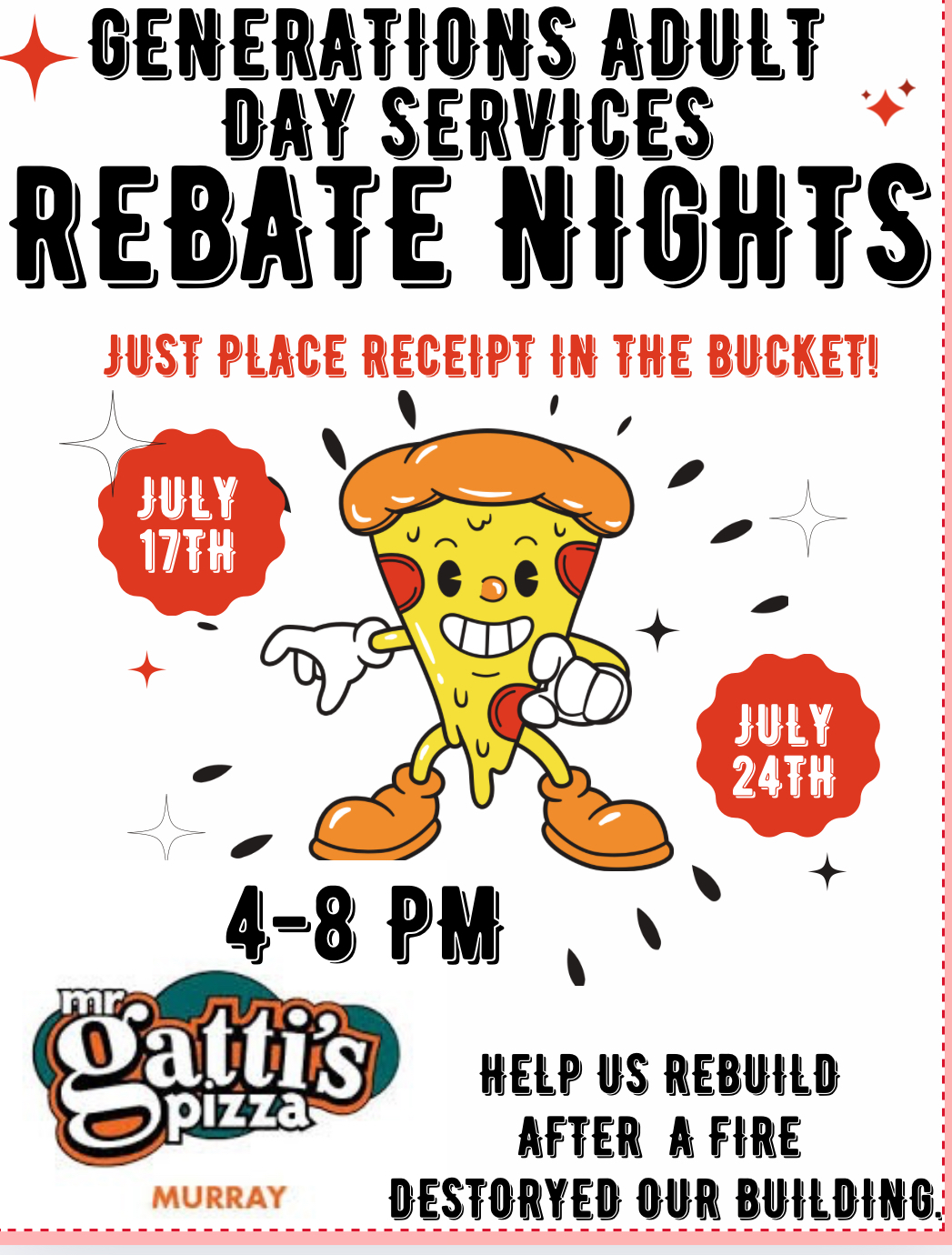 Rebate Night to Benefit Generations Adult Day Service at Mr.Gattis 4-8 pm